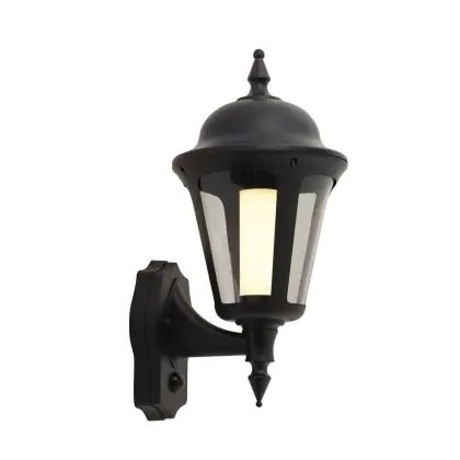 Ansell LED Wall Light Latina Lantern Black - Suitable for E27 up to 42W | IP65 - Motion and Light Sensor