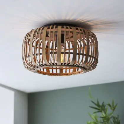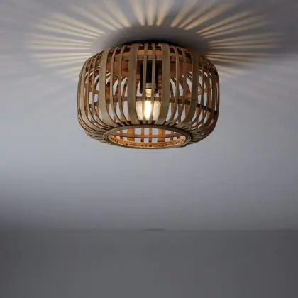 Brilliant Woodrow Ceiling Light Metal Bamboo Brown | 320mm - Suitable for 1x E27