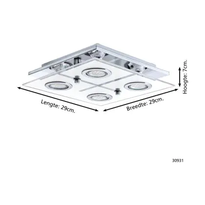 Eglo Ceiling Light Cabo Stainless Steel Chrome 4x2.8W 4x250lm - 830 Warm White | IP20 - Incl. 4x GU10