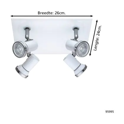 Eglo Ceiling Light Tamara 1 Steel White Chrome 4x2.8W 4x250lm - 830 Warm White | IP44 - Incl. 4x GU10
