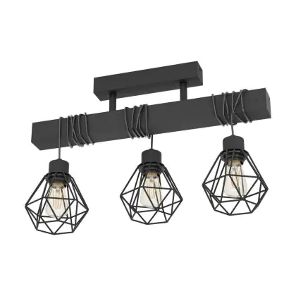 Eglo Ceiling Light Townshend 5 Steel Wood Black | IP20 - Suitable for 3x E27