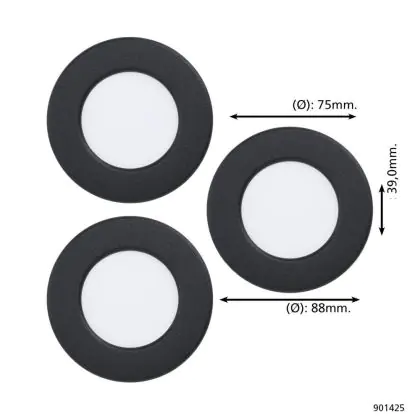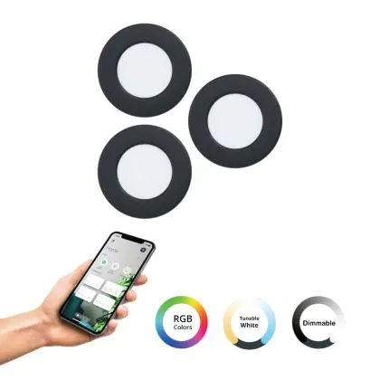 Eglo Connect.Z Smart Recessed Spot Bathroom Fueva 6-Z Plastic Black 8.4W 1020lm - 827-865 Tunable White + RGB | Dimmable