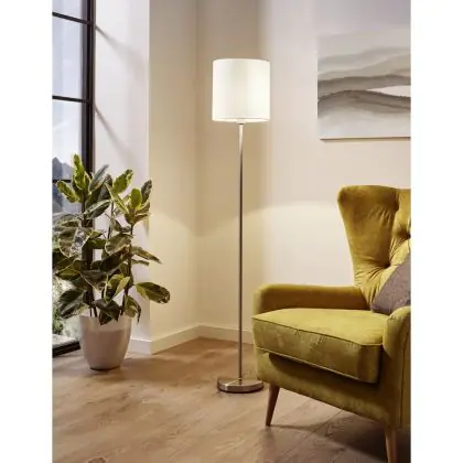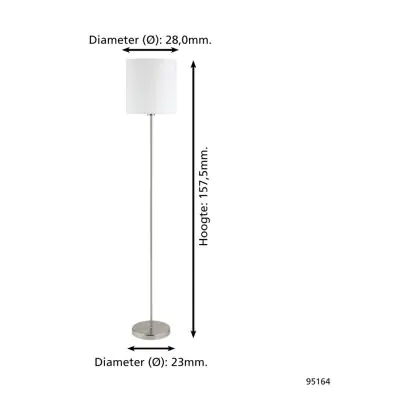 Eglo Floor Lamp Pasteri Steel Satin Nickel White | IP20 - Suitable for 1x E27