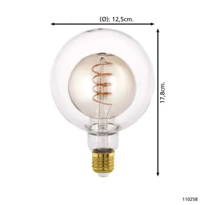 Eglo LED Globe E27 Filament Amber 4W 200lm - 820 Extra Warm White | Dimmable - Replaces 25W