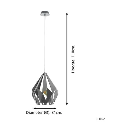 Eglo Pendant Carlton 1 Steel Grey | IP20 - Suitable for 1x E27