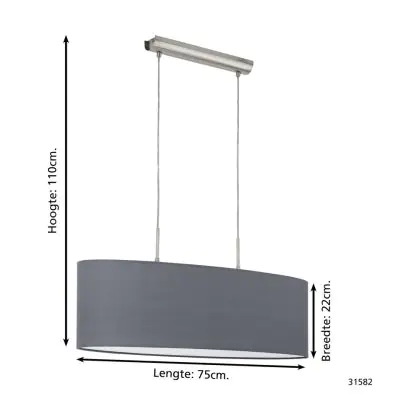 Eglo Pendant Pasteri Steel Satin Nickel | IP20 - Suitable for 2x E27