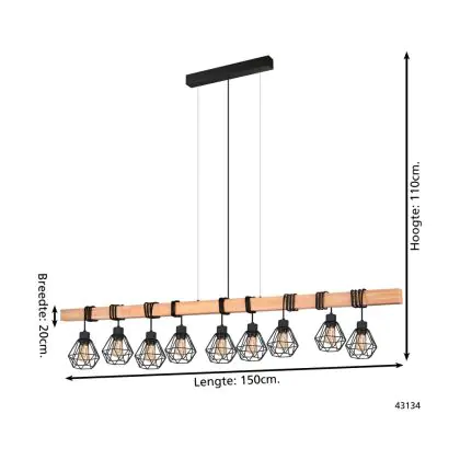 Eglo Pendant Townshend 5 Steel Wood Black | IP20 - Suitable for 9x E27