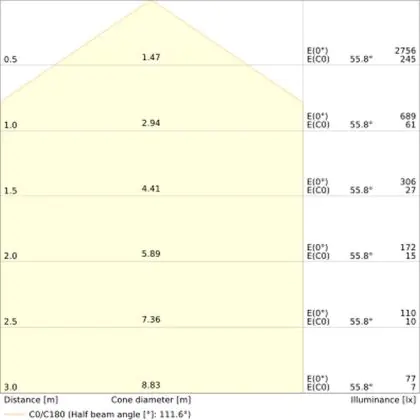 ![]() The colour code is a combination of colour rendering (CRI) and light colour (Kelvin). The first number indicates the colour rendering (1 = very poor colour rendering, 9 = maximum colour fastness). The second and third number contains the light colour. Example: the colour code 830 consists of good colour rendering (8) and warm white light (3000K). |