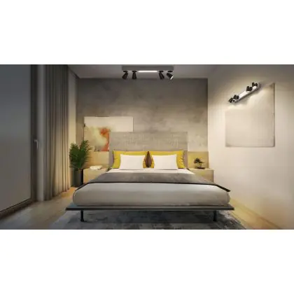 A fixture with a tiltable design makes it possible to direct the lighting specifically at an object or surface. This can play a particularly important role in shops (putting a new collection in the spotlight) or galleries (accentuating works of art). It can also influence the purchasing behaviour or interpretation of visitors.