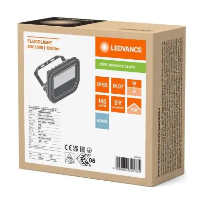 Ledvance LED Floodlight Aluminium White 8W 1200lm 100D - 865 Daylight | IP66 - Symmetrical