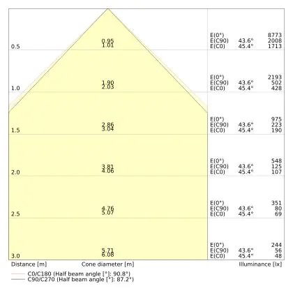 ![]() The colour code is a combination of colour rendering (CRI) and light colour (Kelvin). The first number indicates the colour rendering (1 = very poor colour rendering, 9 = maximum colour fastness). The second and third number contains the light colour. Example: the colour code 830 consists of good colour rendering (8) and warm white light (3000K). |