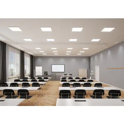 The most common sizes of LED panels are 60x60cm (square) and 30x120cm (rectangular). These are standard sizes for almost all suspended ceilings. There are also various other dimensions available, such as 20x120cm or 15x150cm.