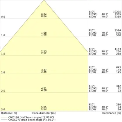 ![]() The colour code is a combination of colour rendering (CRI) and light colour (Kelvin). The first number indicates the colour rendering (1 = very poor colour rendering, 9 = maximum colour fastness). The second and third number contains the light colour. Example: the colour code 830 consists of good colour rendering (8) and warm white light (3000K). |