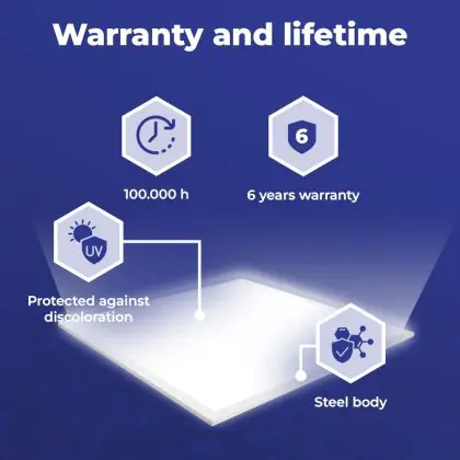 The most common sizes of LED panels are 60x60cm (square) and 30x120cm (rectangular). These are standard sizes for almost all suspended ceilings. There are also various other dimensions available, such as 20x120cm or 15x150cm.