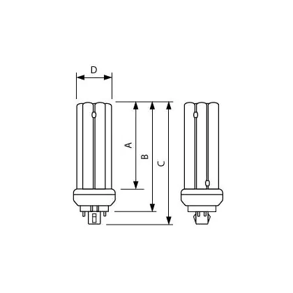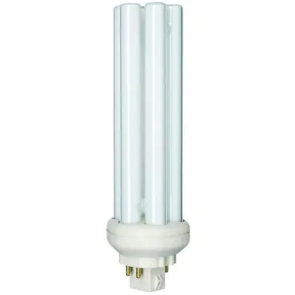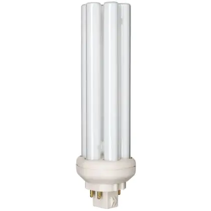 The Philips PL-T TOP 4P lamps are 4 pin socket fluorescent lamps that are very efficient for long run times. They are more efficient than 4P PL-T standard bulbs and their performance is optimized over wide temperature ranges. Each compact fluorescent lamp of this range has a base type GX24q-4 with 4 metal pins. Philips PL-T Xtra 42W 840 4P lamps have a size of 161 cm.